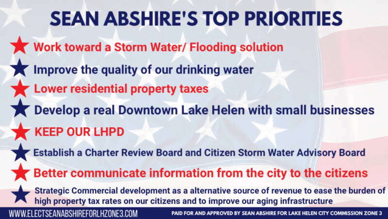 ELECT SEAN ABSHIRE FOR LAKE HELEN CITY COMMISSION ZONE 3